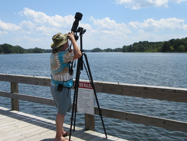But, of course, we were there for the eclipse, and it did not disappoint. We watched it from a fishing pier right at the campground with about 15 other campers. The day was partly cloudy, and the sun was occasionally behind clouds during the beginning, but not enough to keep us from viewing it. As the moon came close to covering the sun there was a noticeable difference in the light, similar to dusk. Then, fortunately we had a great view of the moon covering the sun and the totality phase. Mike bought a 150-600 mm lens to be able to photograph the eclipse and got some great pictures. His view through the viewfinder was so incredible he wanted to share. So he let everyone on the pier take turns throughout the event to get an up close and personal view.