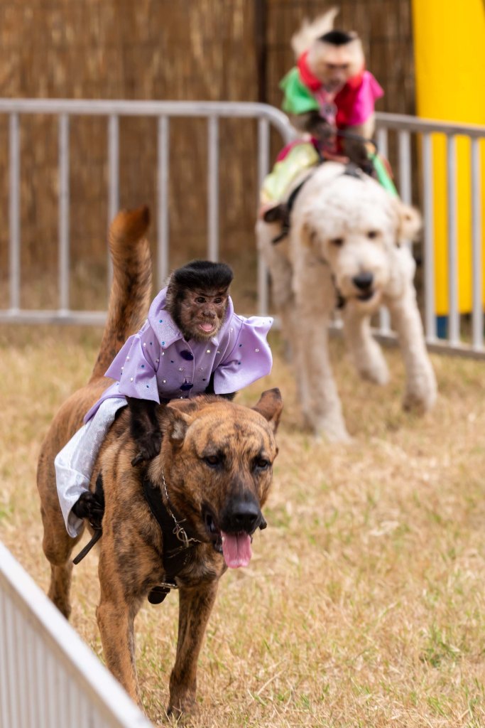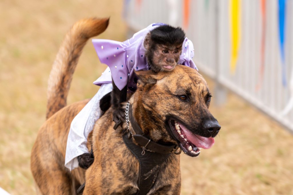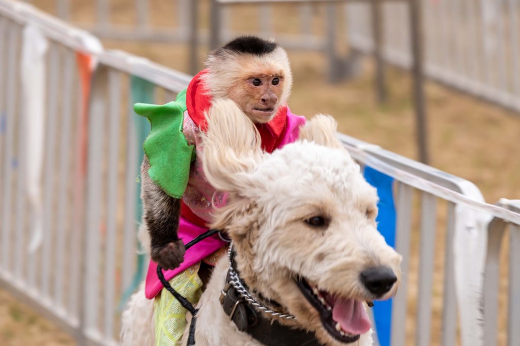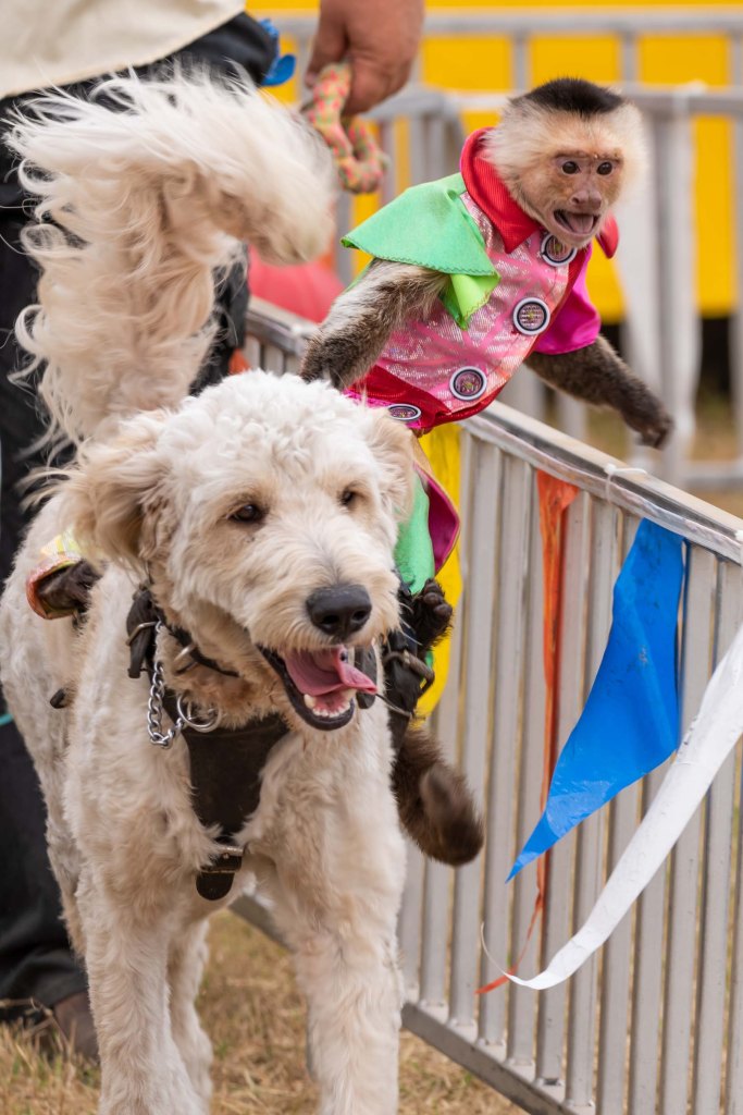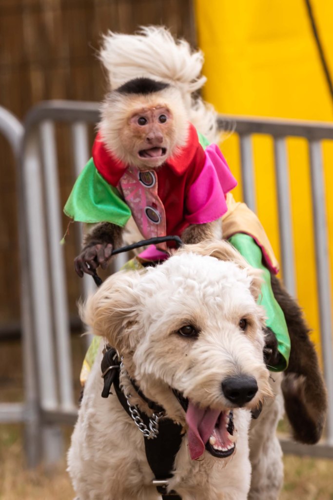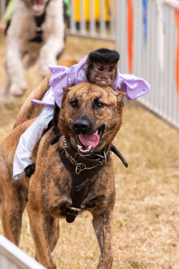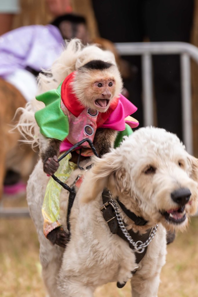 Before the rodeo there was a Banana Derby. The racing monkeys were hilarious! There was even a tightrope walking dog, how cute is he?!?