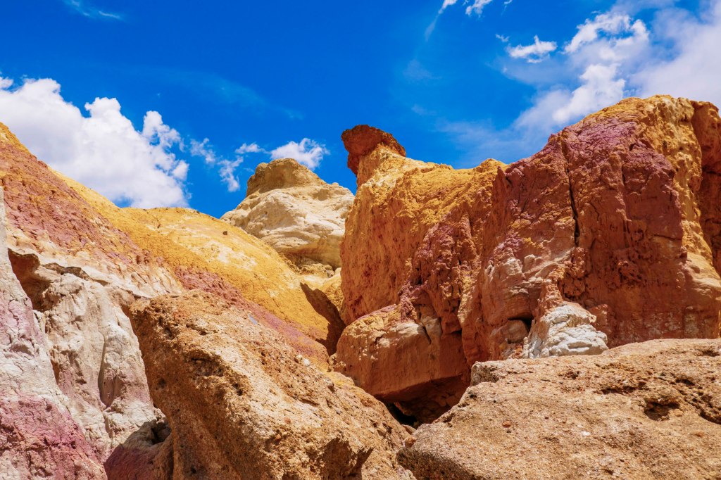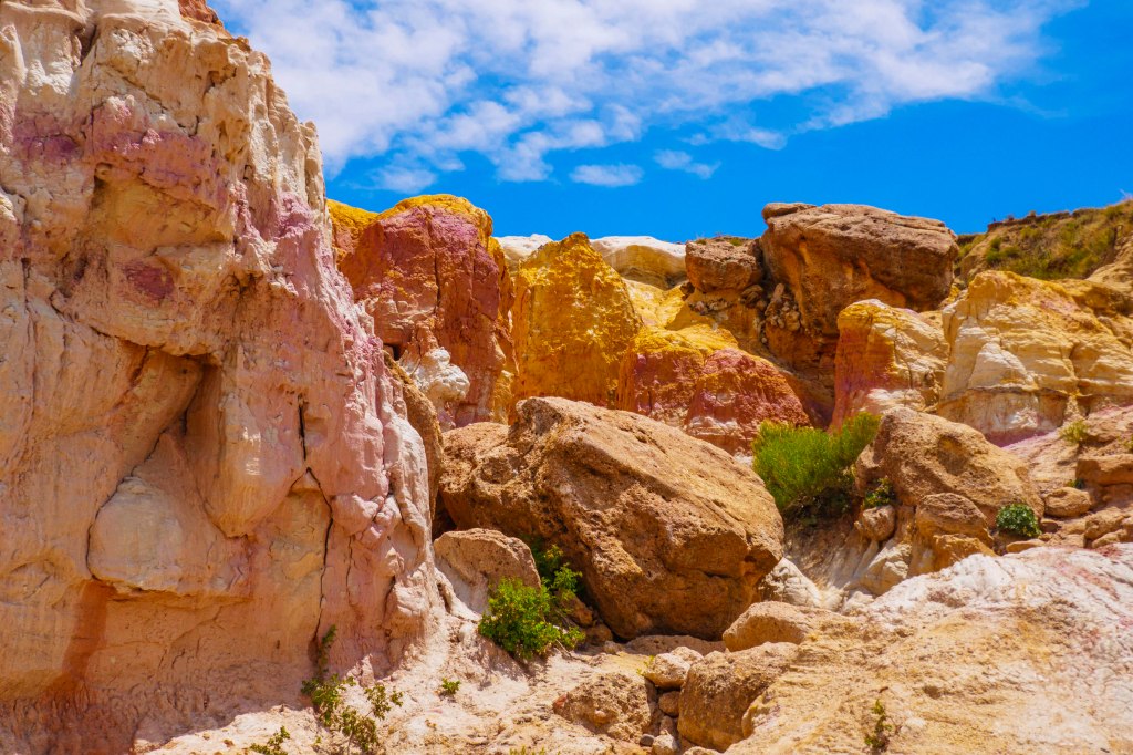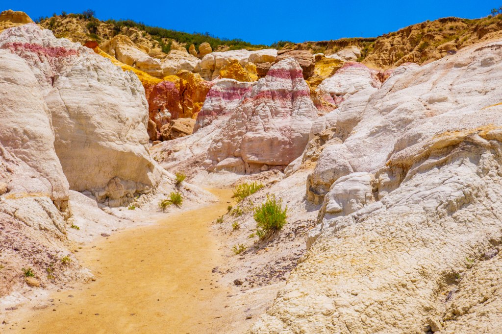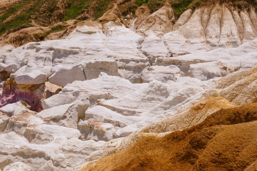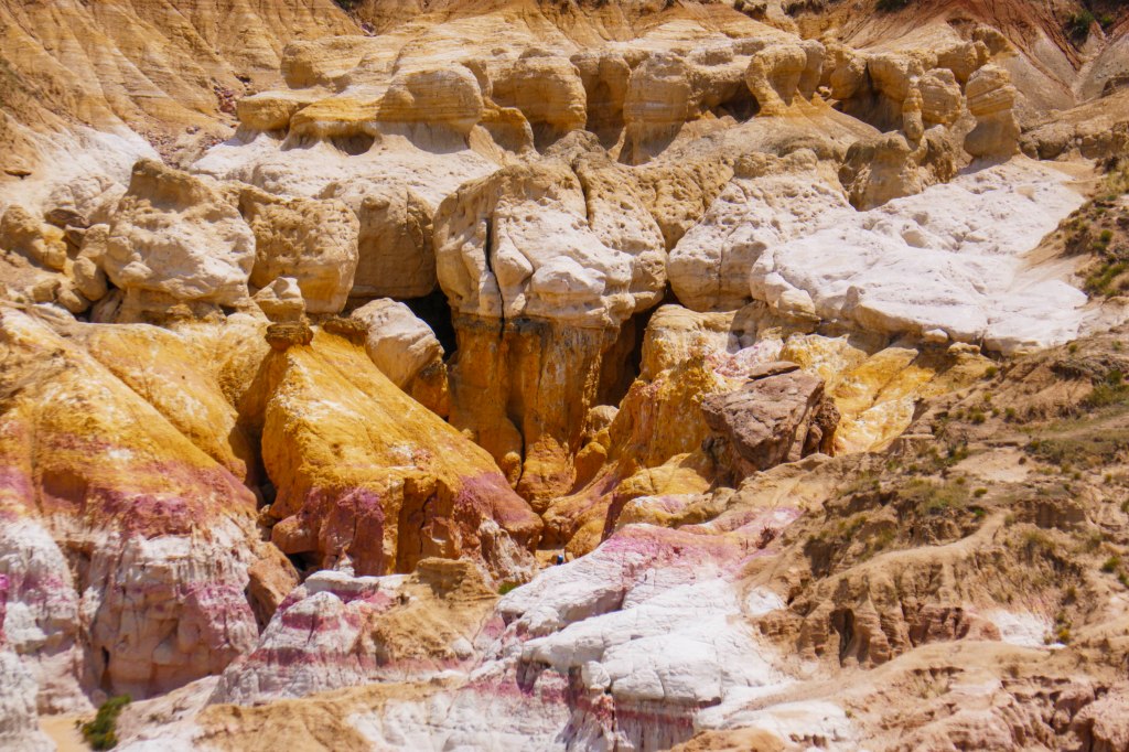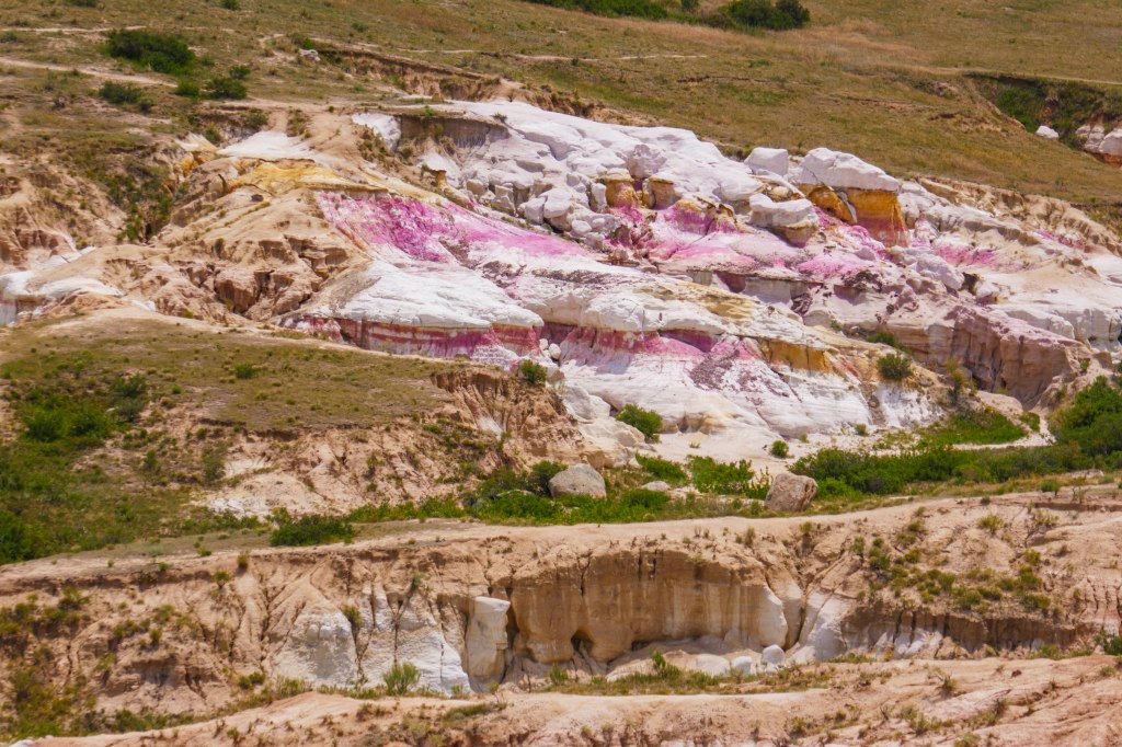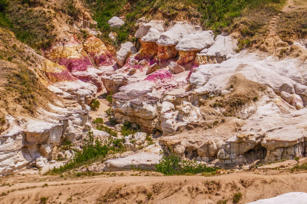 The colorful clays in these rocks were mined by American Indians to make paint! The bright colors were caused by oxidized iron compounds and make for some of the most colorful rocks we have ever seen.