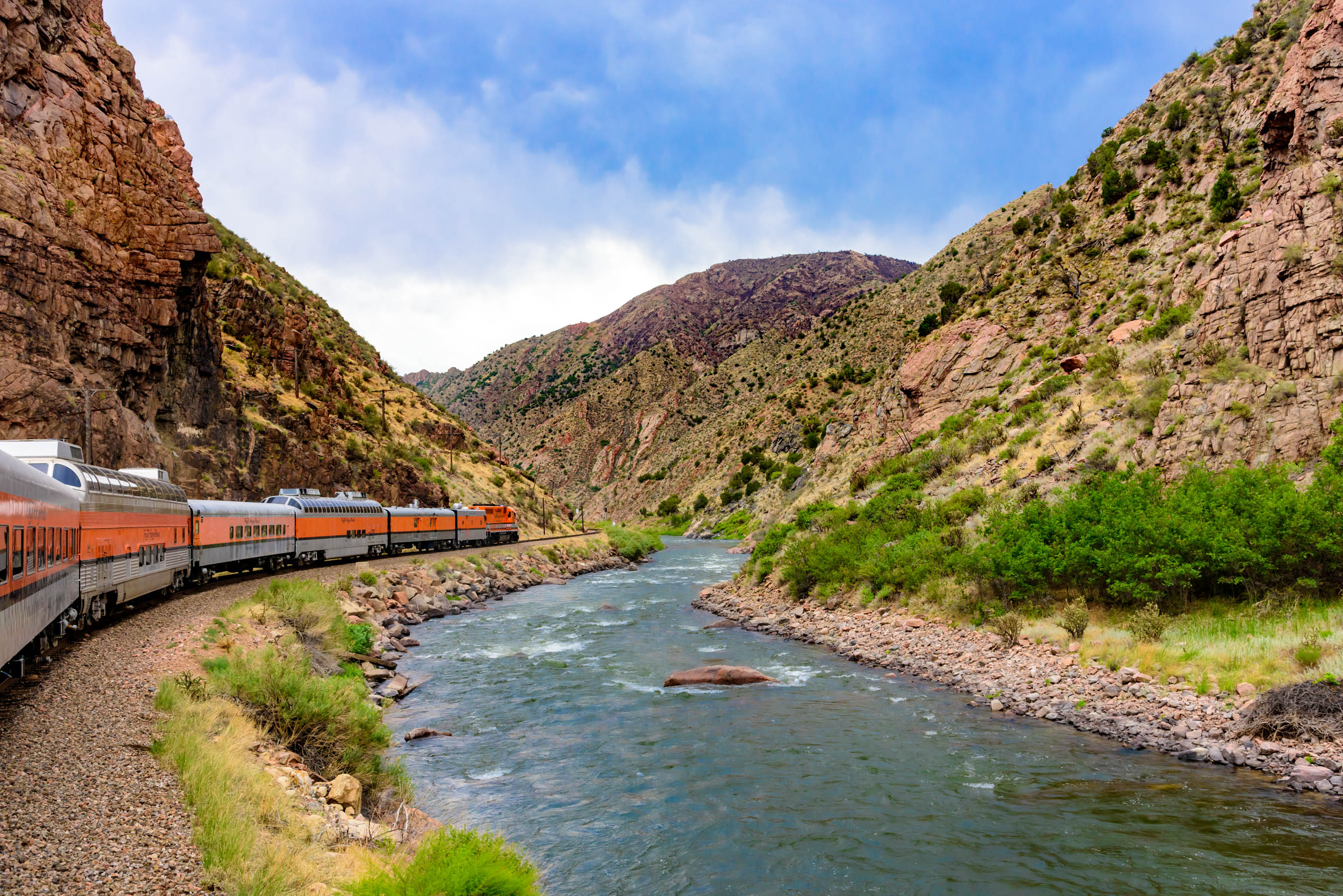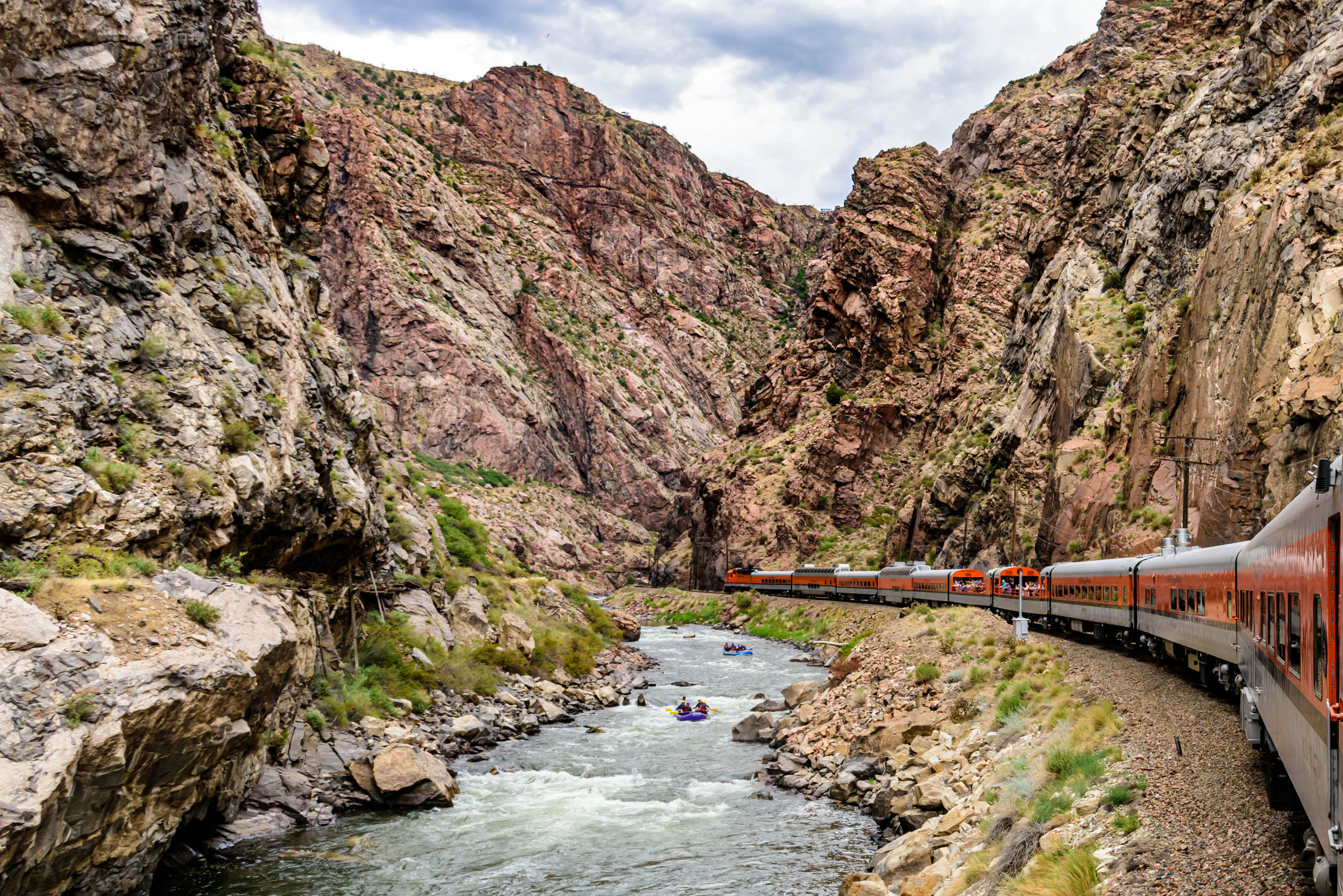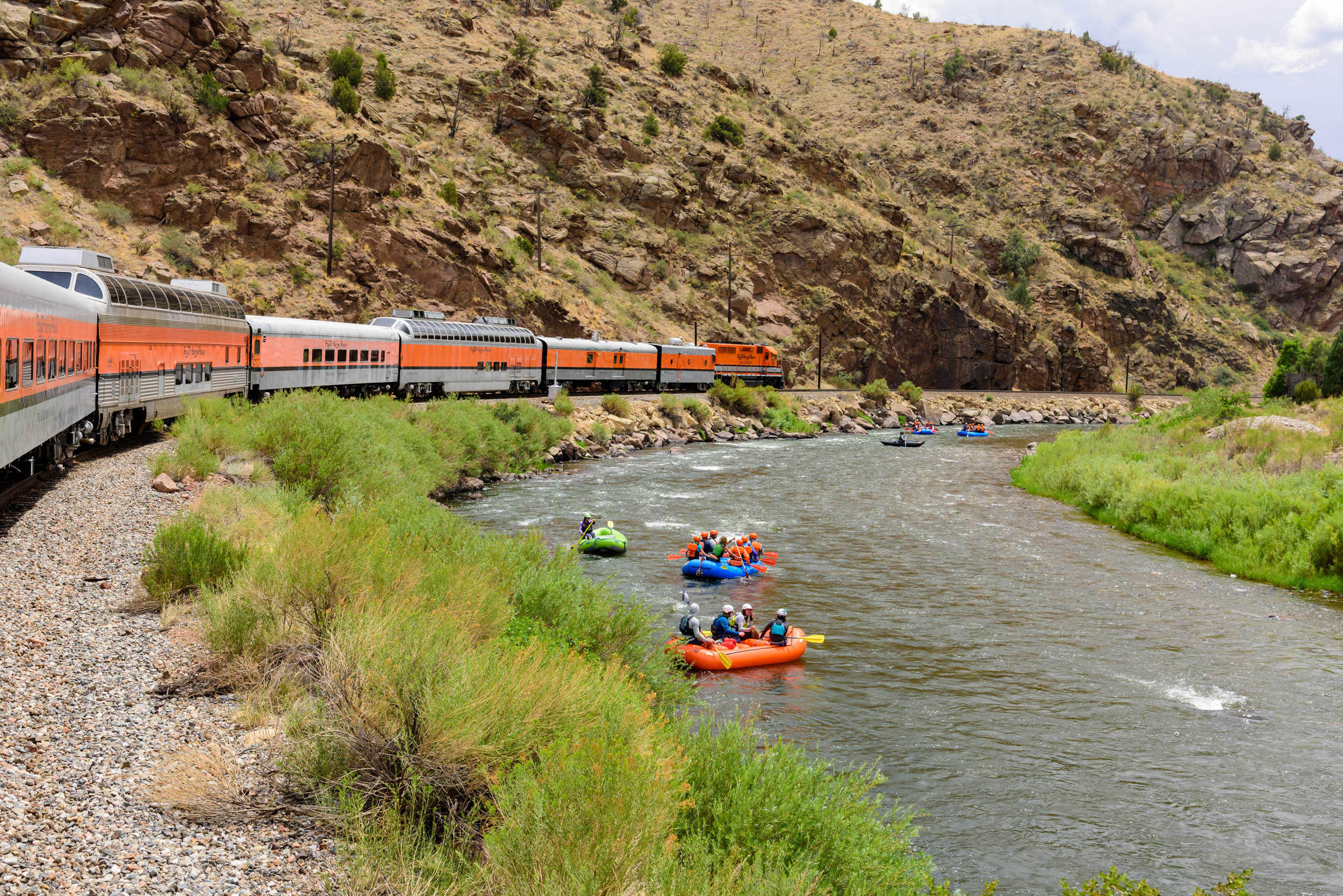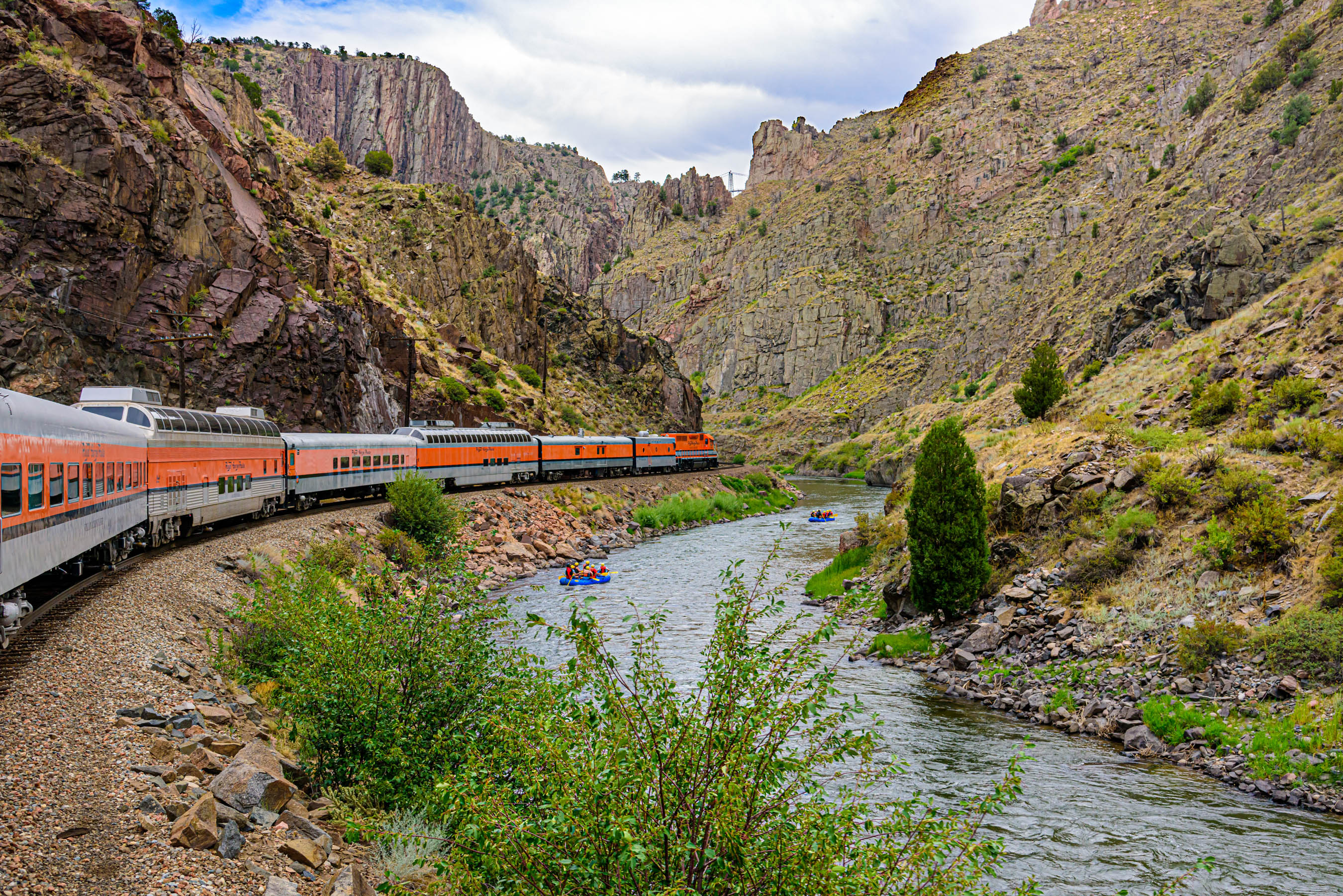 We chose the Vista Dome seats, which were a little more expensive, but definitely worth it for the view. The ride is about an hour each way. We ordered sandwiches for lunch on the way out and then walked to one of the one of the open cars for the return ride. From the open car we could really see the gorge and we even got to race some rafters! (We won!)