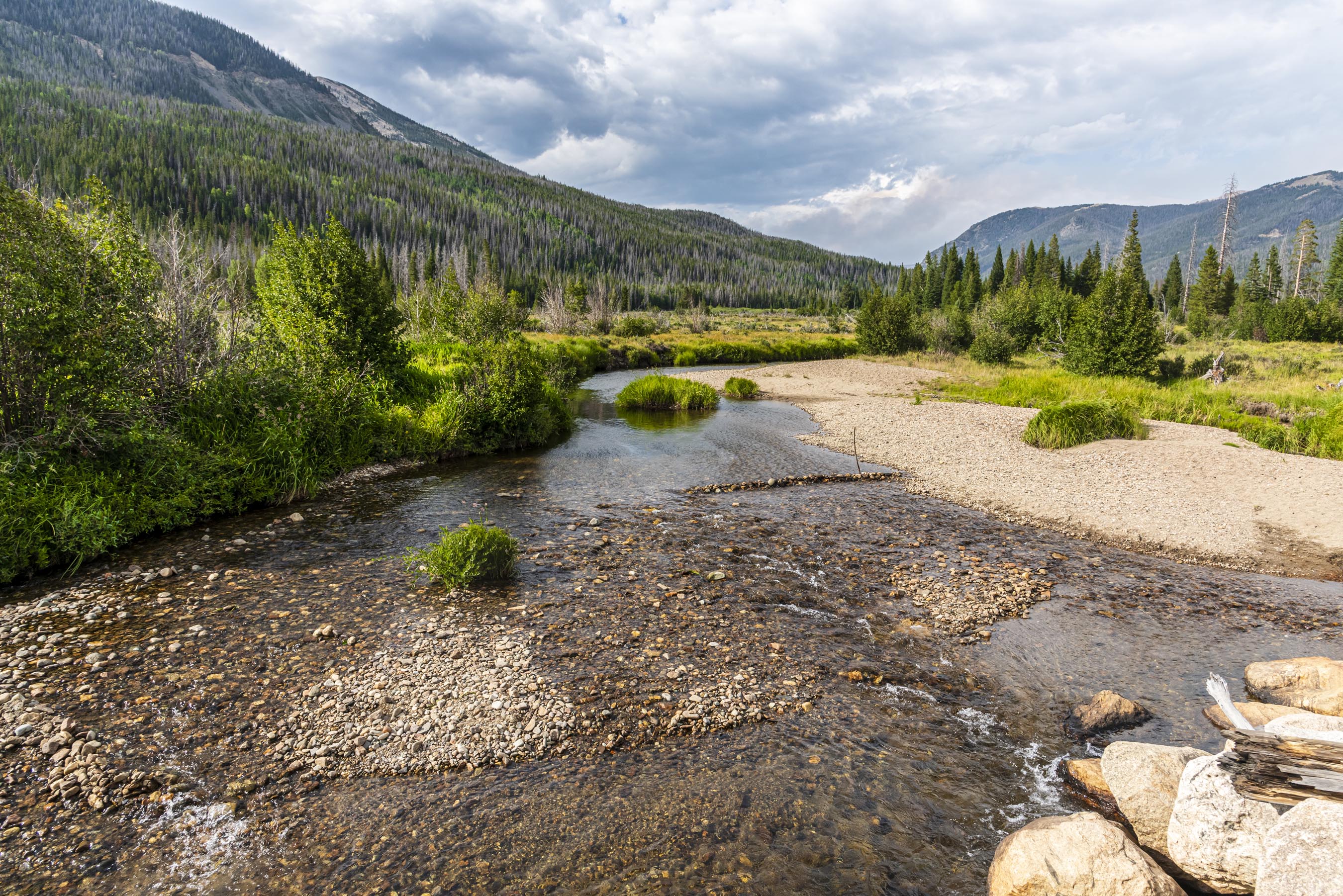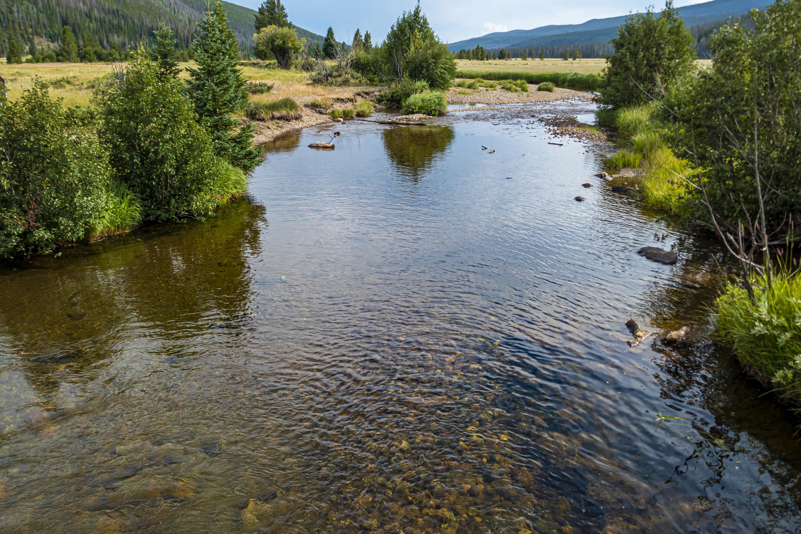 We exited the park on the Grand Lake side and right before you leave is what remains of the Never Summer Ranch, also known as the Holzwarth Historic Site. What really interested us we walked around the site was seeing the beginnings of the Colorado River.
