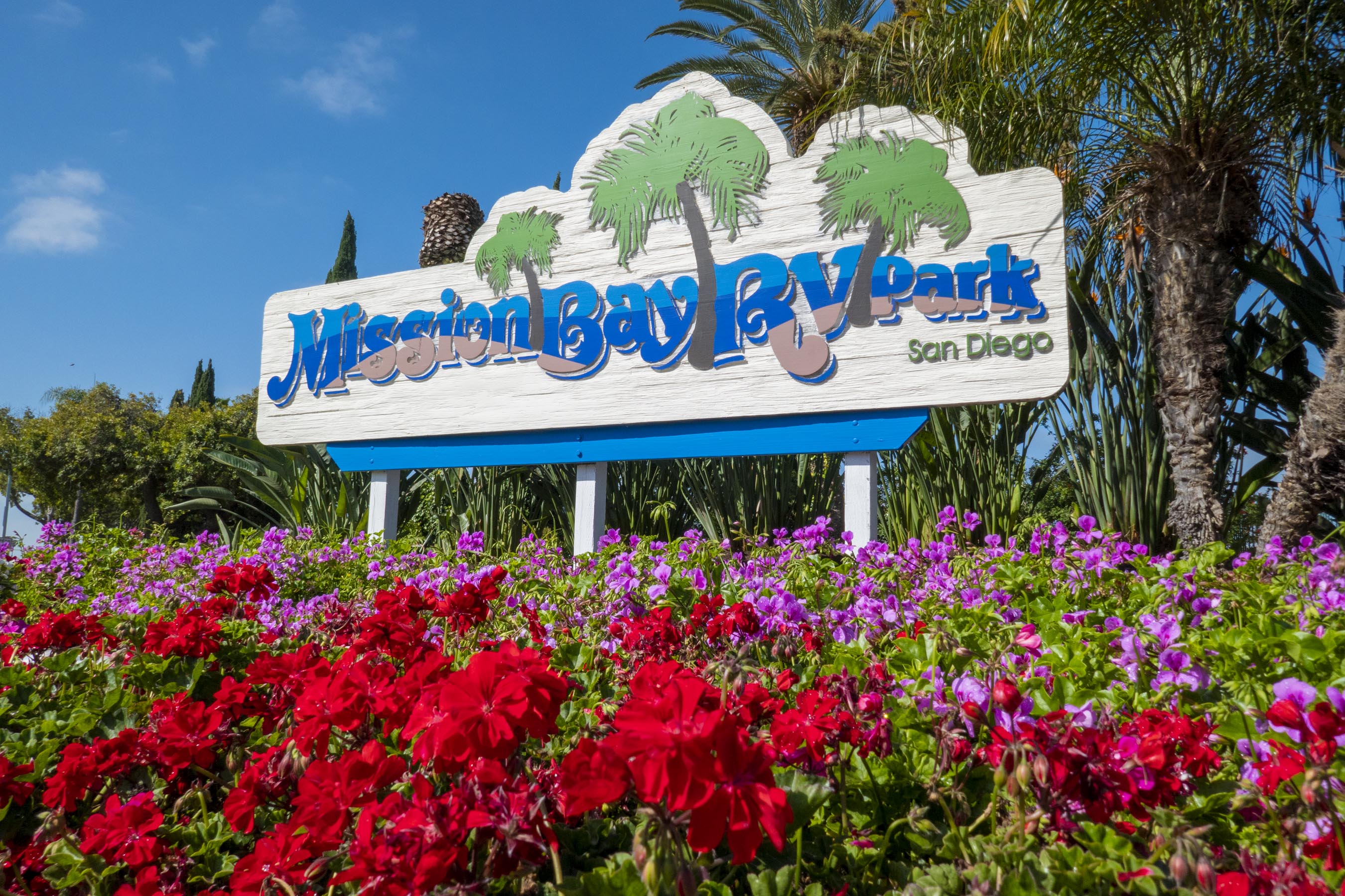 We stayed at Mission Bay RV Resort which is really just a blacktopped parking lot with hookups and lines to mark spots. But it’s a great place to stay if you want to spend time in San Diego. And surprisingly, almost every site has its own tree!