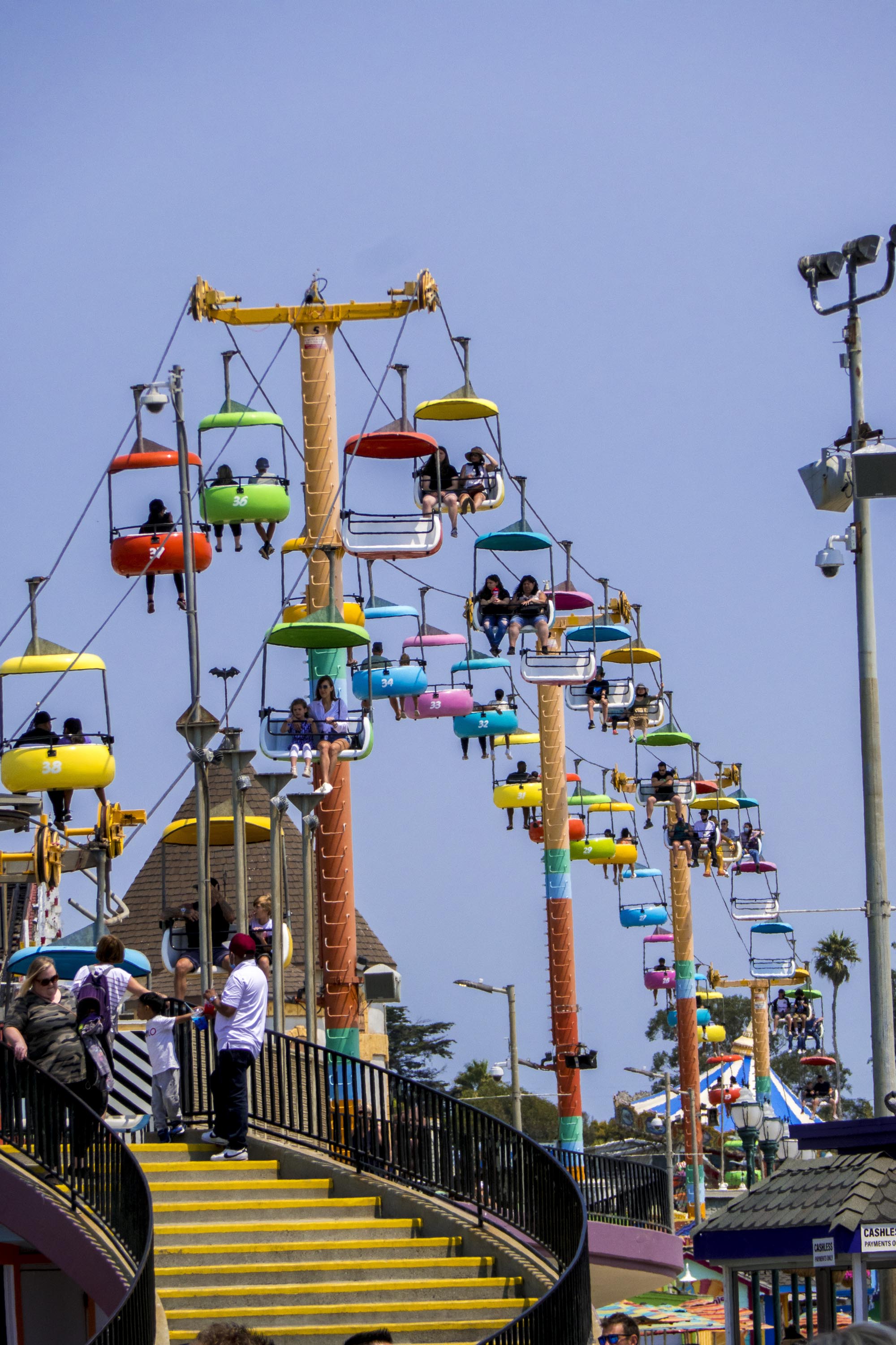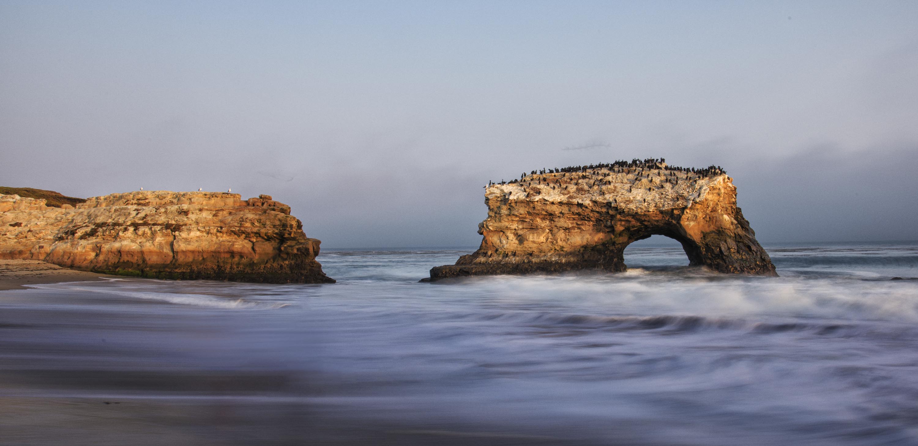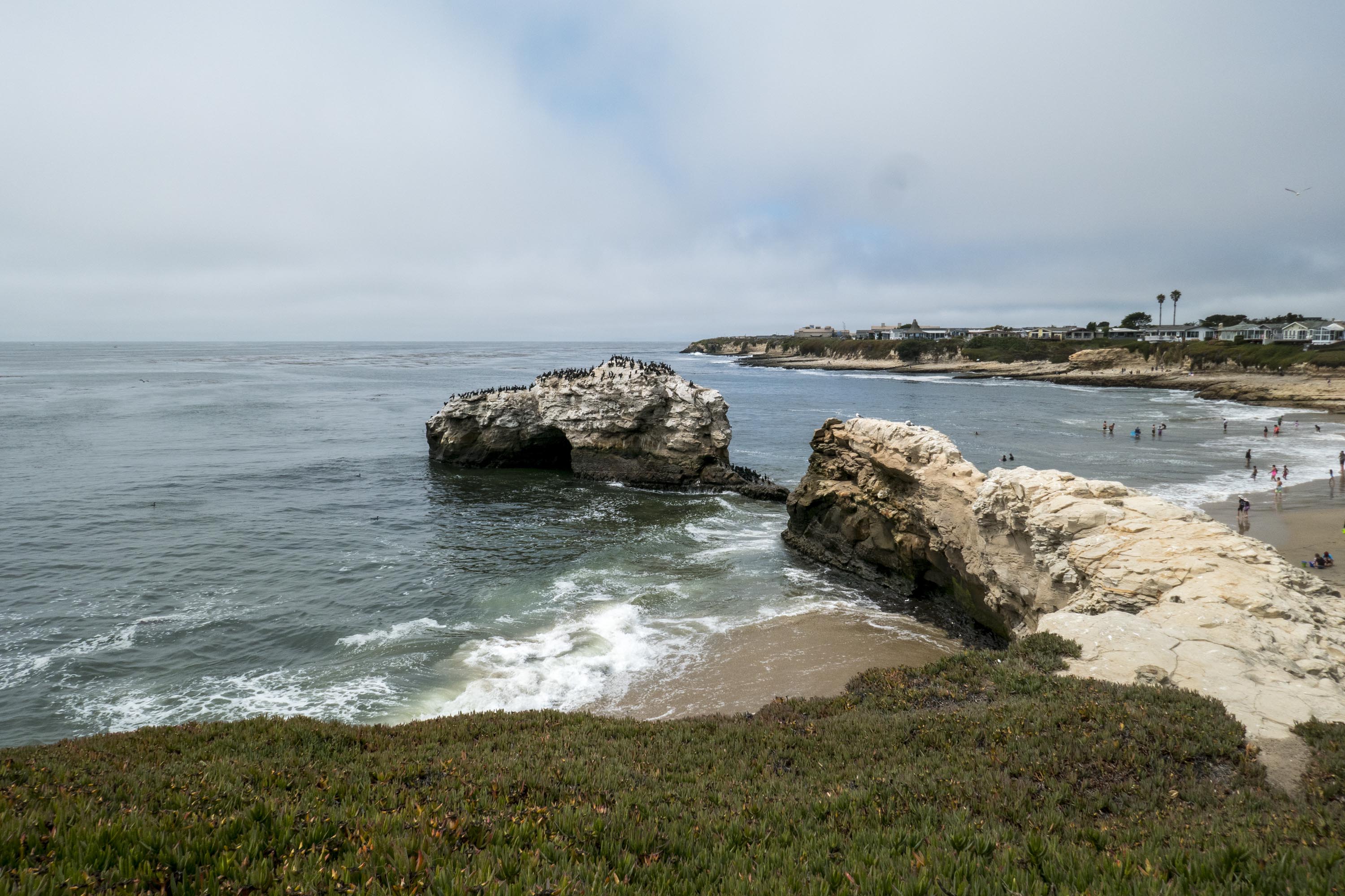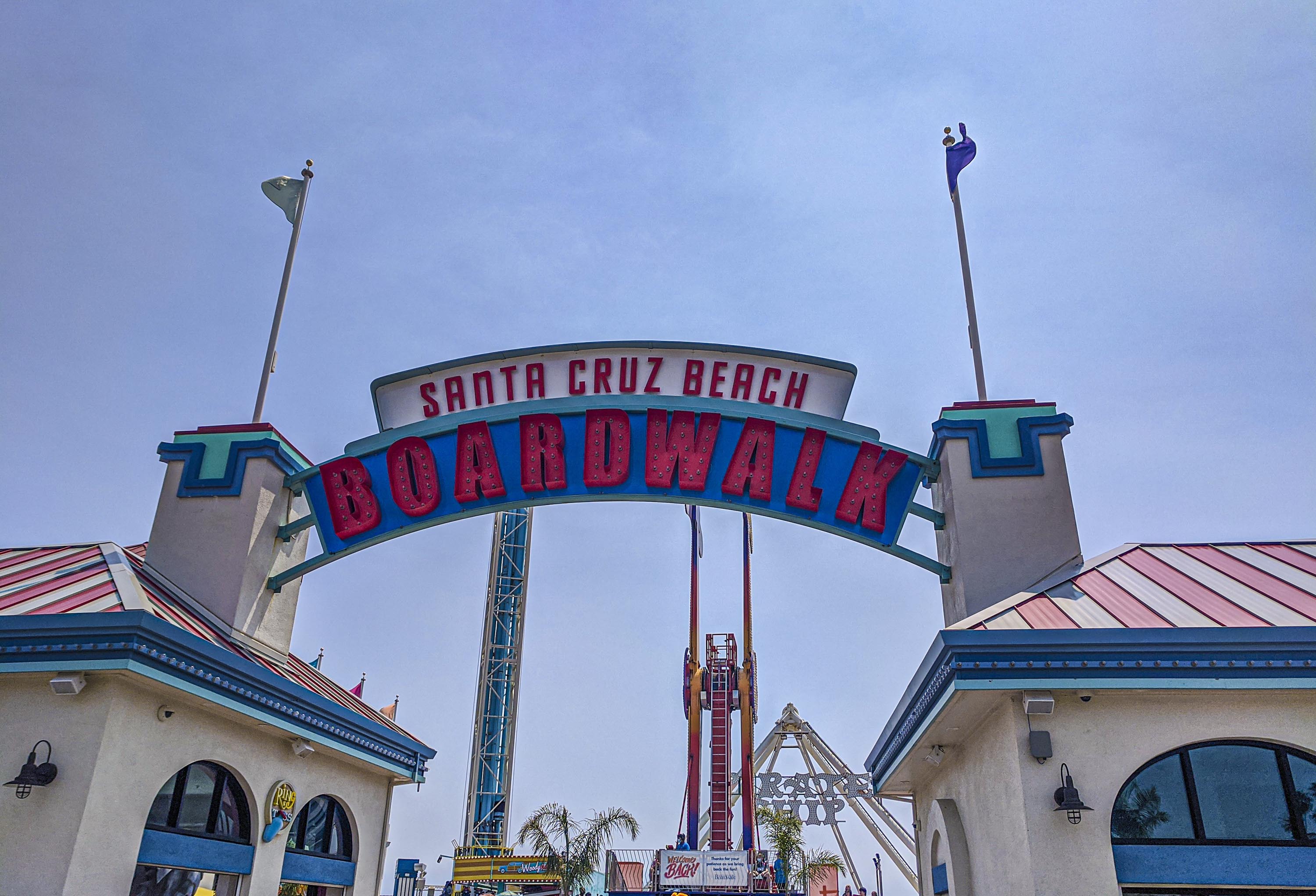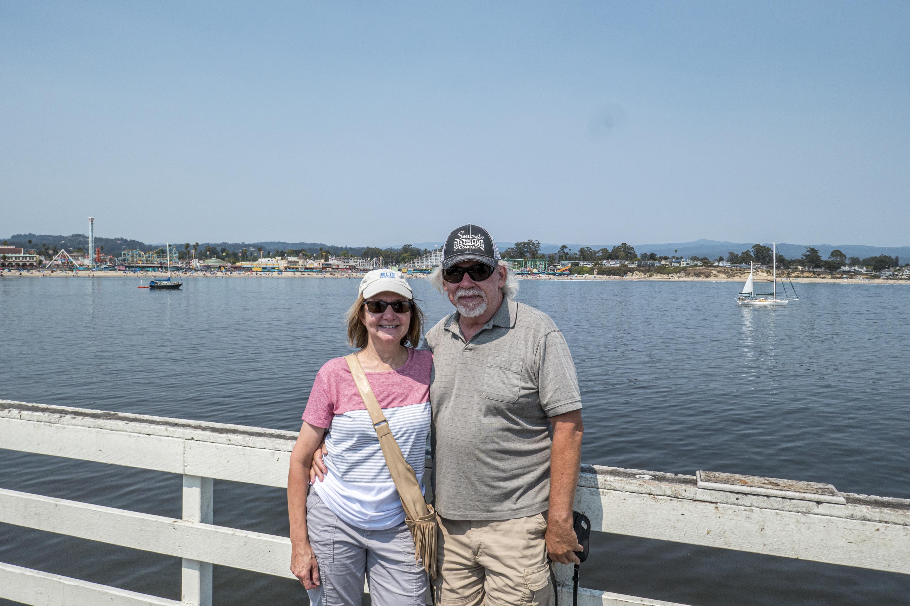 Santa Cruz’s waterfront has a boardwalk, but the entire length is an amusement park, not shops, restaurants, and hotels like we’re used to. There is also a wharf that has several restaurants. We stopped at Makai for lunch and had a great chat with the bartender. He suggested a drive from the wharf area up to the Natural Bridges State Beach, so we did that the next day.