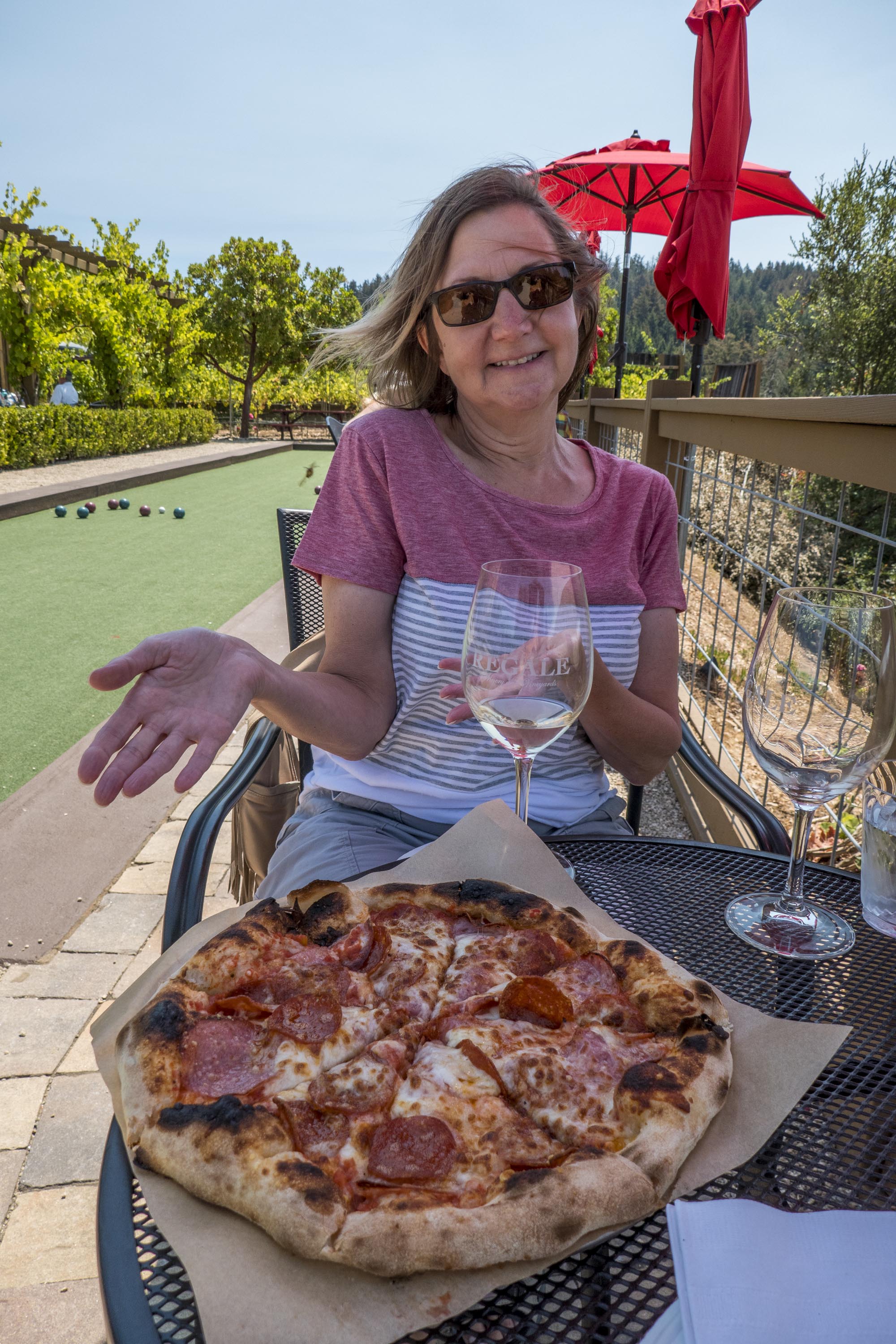 Speaking of classic rock, you may know we are huge Doobie Brothers fans, so we had to pay tribute to their song Neal’s Fandango and take a drive through ‘the hills above Santa Cruz.’ Glad we did, we found Regale, a beautiful winery to have lunch at. The setting was incredible, the pizza was great, and the wine was very good!