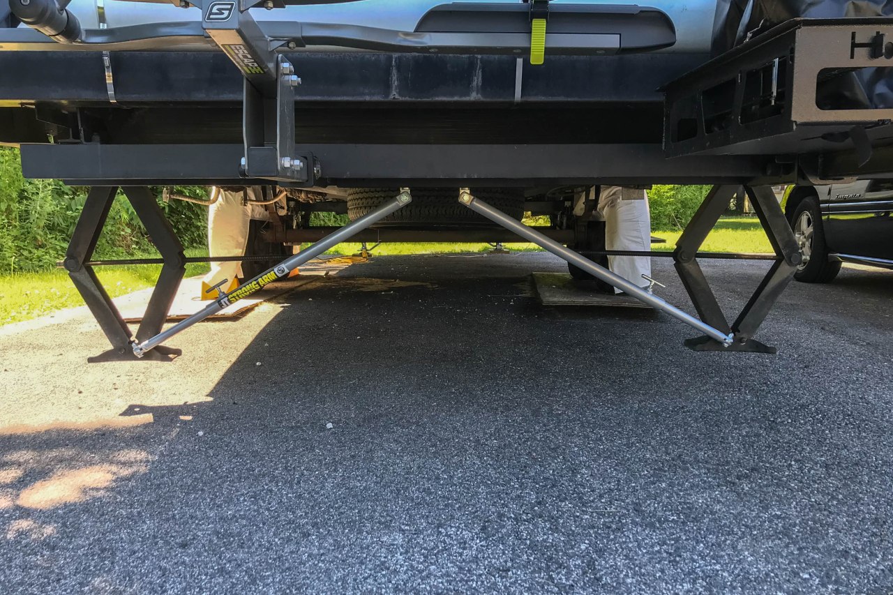 So, we researched a lot of the add on stabilizers, read review after review, and we considered king pin stabilizers too. The JT’s just had so many good reviews, and we didn’t want to give up more space to storing a kingpin stabilizer – so we went with them. Here’s a link: JT’s Strong Arm