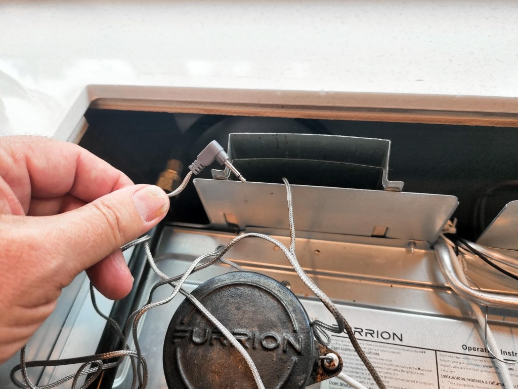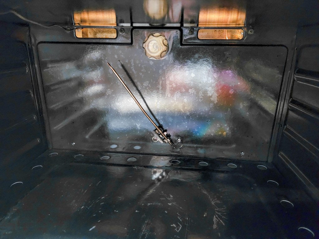 Candi loves to cook and bake and unfortunately this oven leaves a lot to be desired. It doesn’t hold a temperature well and it’s hard to actually get an accurate temperature. I started thinking about it and came up with some things that help improve the oven. First, the thermocouple probe was mounted so that it was directly above the rear vent holes. Heat would come directly up thru the holes, heat the probe too quickly, shut the burner down. So, I took the probe off the bracket, rotated the bracket, and replaced the probe so that the tip is pointing up toward the top of the oven, and not touching the wall.