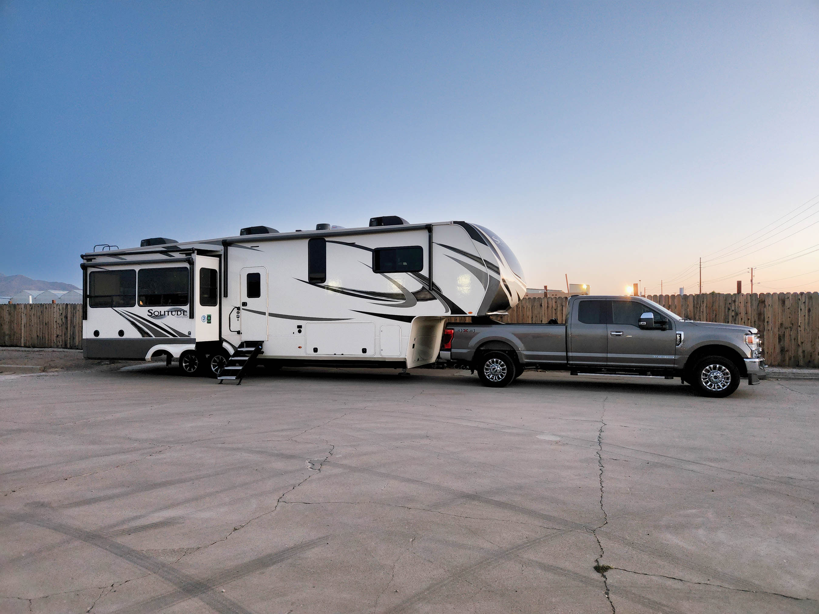 The drive from Mesa was pretty uneventful, through a whole lot of desert and a few medium sized mountains. Fortunately, our new truck had no problem with the hills – and it’s SO much quieter than our old one!